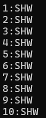 std::cout << i + 1 << ":SHW\n";