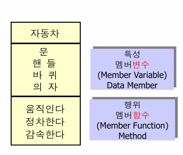 - 예를 들어 자동차라는 객체를 생각해보면: