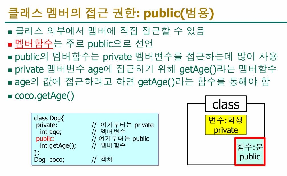 public: //public은 외부에서 접근 가능