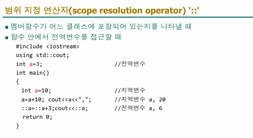 - 클래스 안: 함수 원형(프로토타입)만 선언