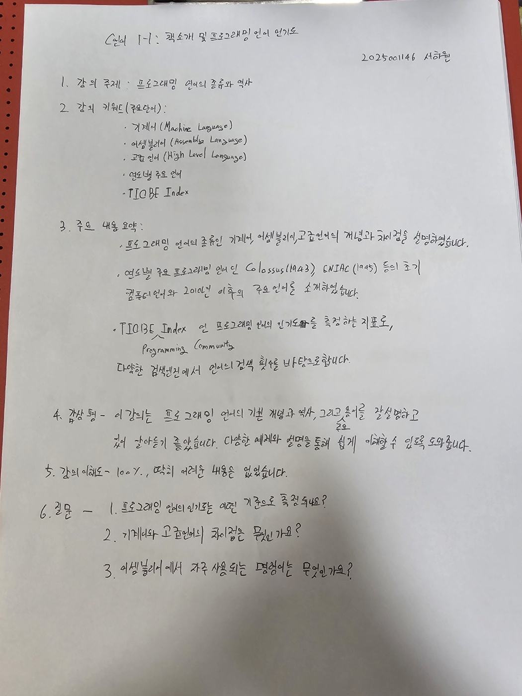 | [2주차] 자신의 이름을 10번 출력하는 프로그램 작성 (0) | 2025.03.11 |