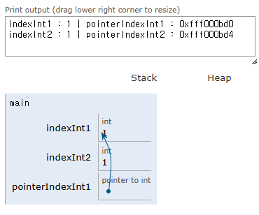 printf("indexInt1 : %d | pointerIndexInt1 : %p \n", indexInt1, &indexInt1);
